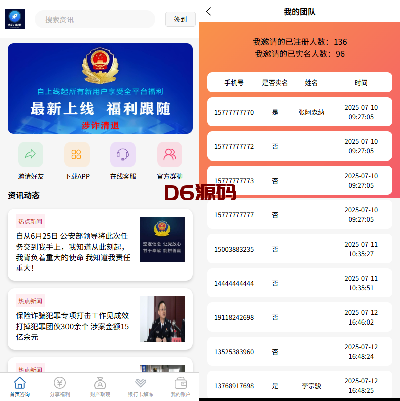 【邀请注册+实名验证奖励】系统源码,适用于各类营销裂变场景,支持用户邀请好友注册并完成实名后获取奖励。系统自动判断是否满足奖励条件,并触发发奖逻辑,助力平台快速拉新。 ✅ 邀请机制:用户专属邀请链接/邀请码 ✅ 实时统计:邀请总数 / 已实名人数 / 奖励达标进度 ✅ 奖励规则配置:如邀请 10 ...